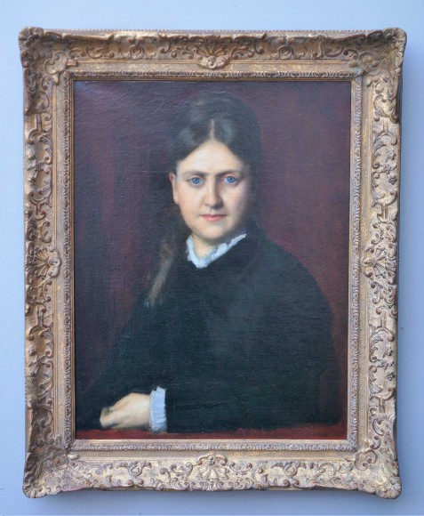 Henner Jean Jacques ( 1829-1906) Très beau rendu pour ce portrait de Madame Hypolite ADAM née Perrocheau, signé en haut à droite et daté dans le haut gauche.Toutes les séances de pose pour cette oeuvre ont été consignées par l 'artiste. Huile sur toile. Cadre bois et stuc doré.