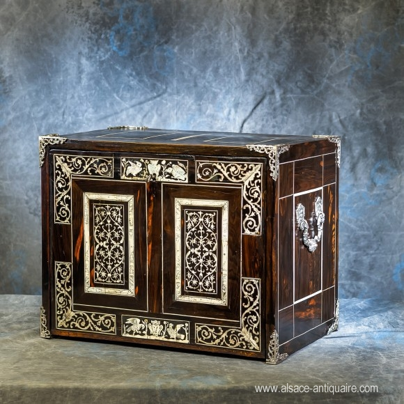 cabinet décor marqueté fleurs, oiseaux, musique et