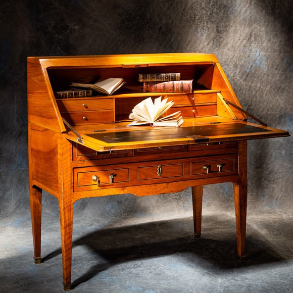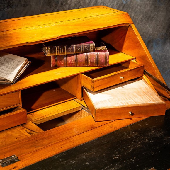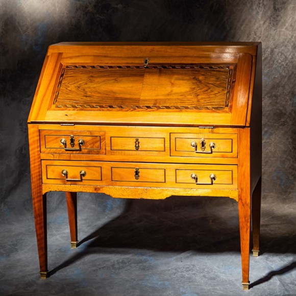 Sobre et habillé d'une belle patine blonde, ce secrétaire aux dimensions très logeables trouvera sa place dans tout type d'intérieur. Noyer et marqueterie d’érable. Alsace - Epoque début XIX ème .