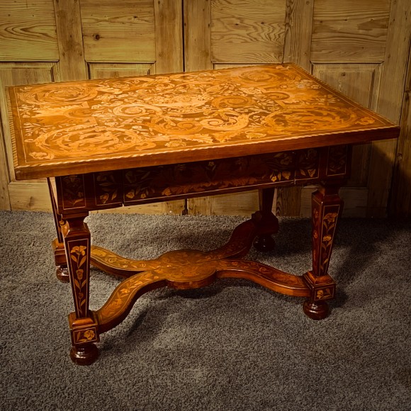 Spectaculaire travail de marqueterie pour cette table d'apparat qui pourra également faire office de bureau.