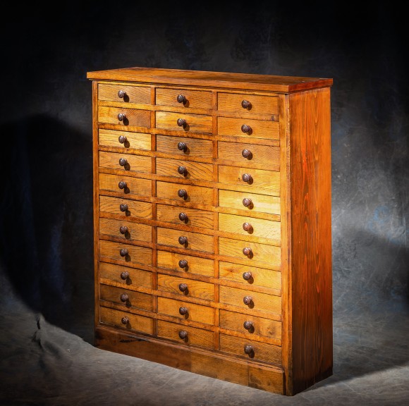 Conçus comme meubles classeurs aux nombreux tiroirs , ces meubles de d’atelier ou de magasins étaient destinés au rangement de stocks de bonneterie, d’outils, de pieces d’horlogerie ou de mécanique, de notes sur des savoir-faire. Détournés de leur utilisation première, ils compléteront un intérieur moderne, ou une ambiance industrielle pour y ranger des 33tours, des collections fossiles, statuettes, monnaies anciennes et diverses, cartes postales, timbres, articles publicitaires, Chacun pourra s’y reconstituer son cabinet de curiosités.