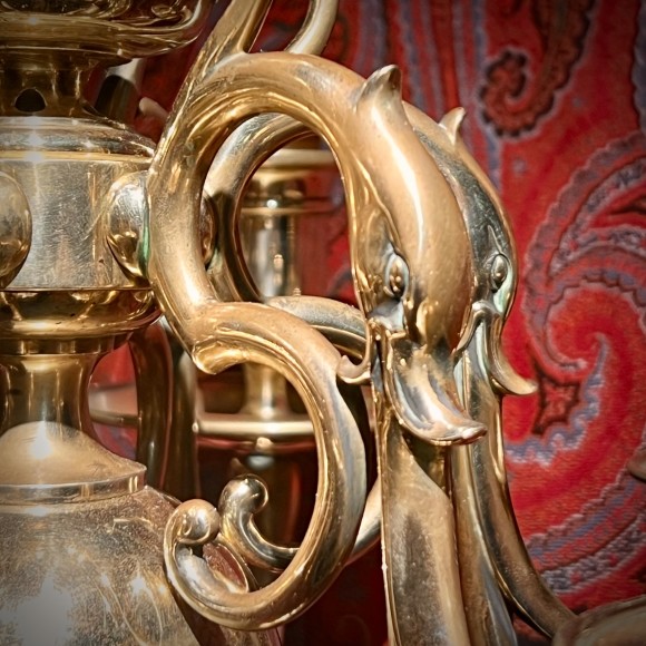 Spectaculaire paire de chandeliers en bronze à 6 feux, decor balustre sur base circulaire moulurée, les bras soutenus par des consoles en forme de cols de cygnes, gueule ouverte . Une des girandoles est signée sur la base F.BARBEDIENNE . Hauteur : 71 cm diamètre : 46,5 cm cm . Belle patine, quelques petits perçages dus à un ancien montage à l’électricité, permettant également une nouvelle adaptation en cas de destination comme pied de lampe.