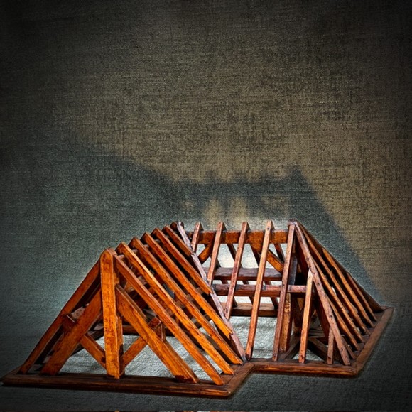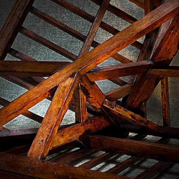 Belle patine pour cette charpente, probablement la maquette d'un projet réalisée par un compagnon qui préparait sa maîtrise.