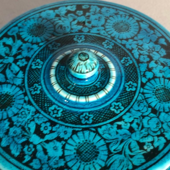 Très rare petite Bonbonniere ou boite de forme circulaire, décor floral inspiré de la Perse antique dans des tonalités de bleu typiques du savoir faire des céramistes perses, et dont Théodore Deck ( 1823-1891) s’est attaché à percer le secret.