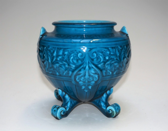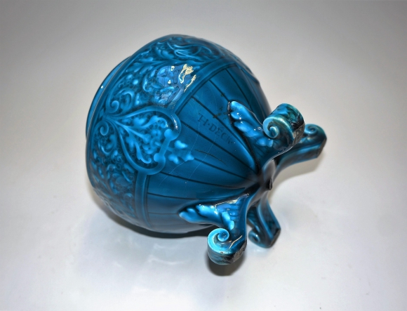 Petit Vase Jardinière signée en creux sous la vasque Th. DECK. Couleur caractéristique des réalisations de Deck, la couleur bleue est devenue un référence, le bleu Deck.
