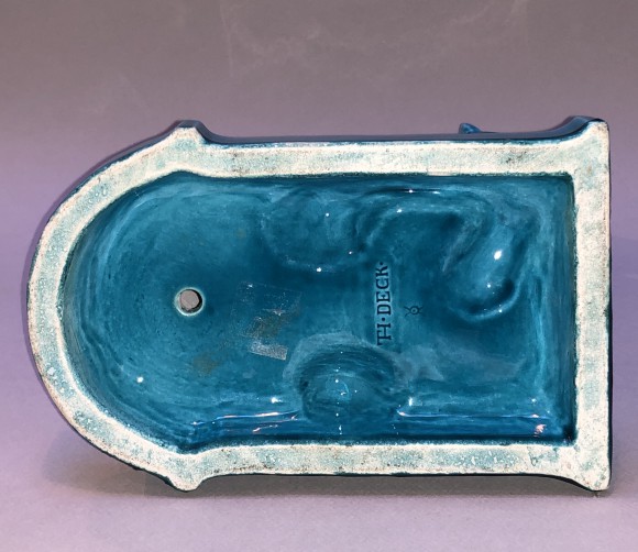 Céramique par Théodore Deck , dessin inspiré du chat égyptien, représentation de la déesse Bastet. Signé sous la base Th.Deck . Epoque XIX ème siècle .