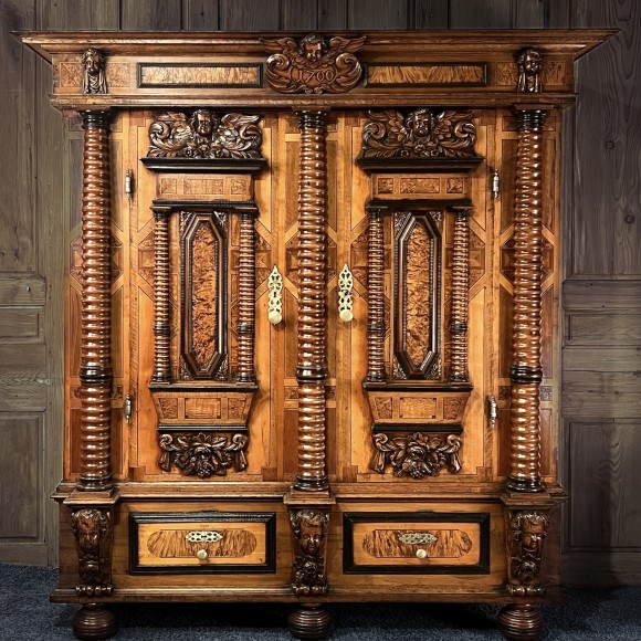 Armoire alsacienne 7 colonnes décor marqueté renai