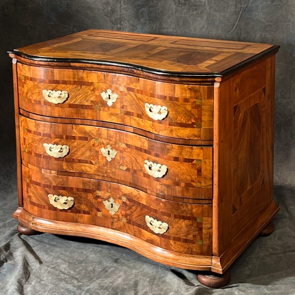 Commode Galbée XVIII ème Marquetée Bois De Violett