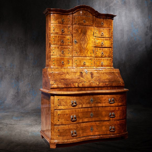 Cabinet scriban marqueté de noyer XVIII 7me siècle