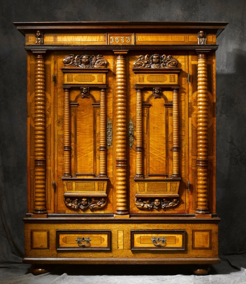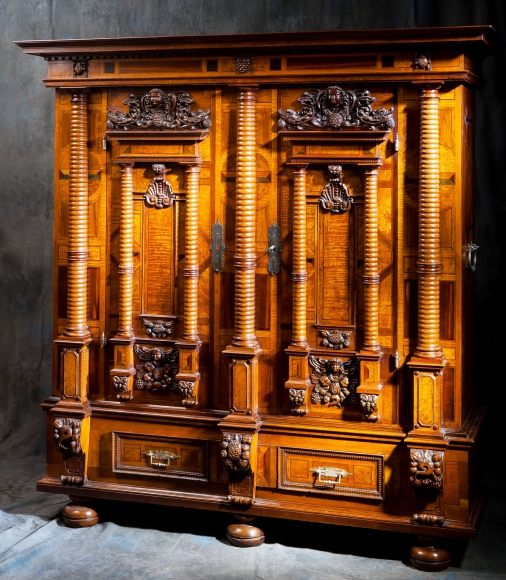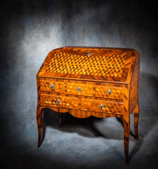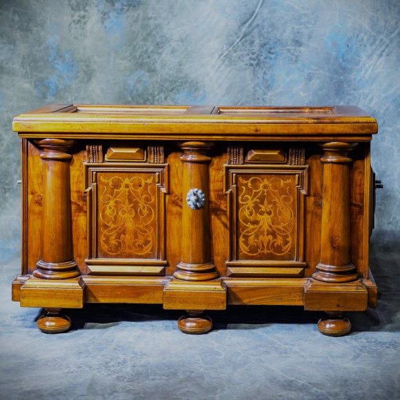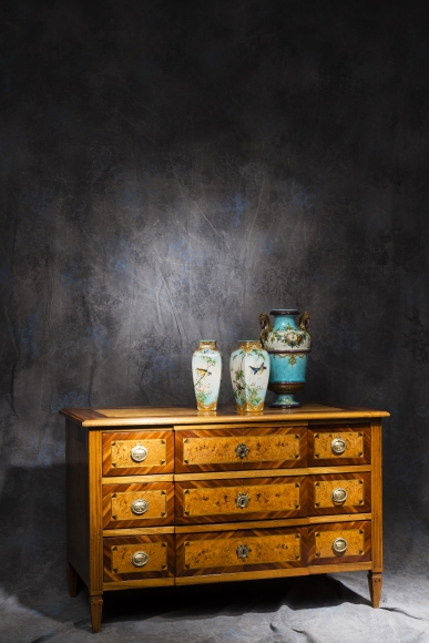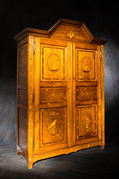 cabinet décor marqueté fleurs, oiseaux, musique et