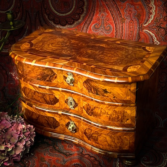 Petite commode ecritoire Marqueterie de noyer XVII