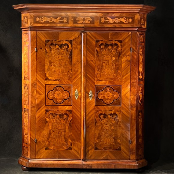 Armoire XVIII ème Marquetée Fleurs et Volutes