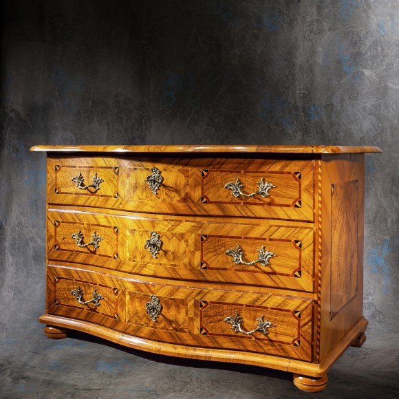 Commode alsacienne galbée marquetée noyer 18 ème