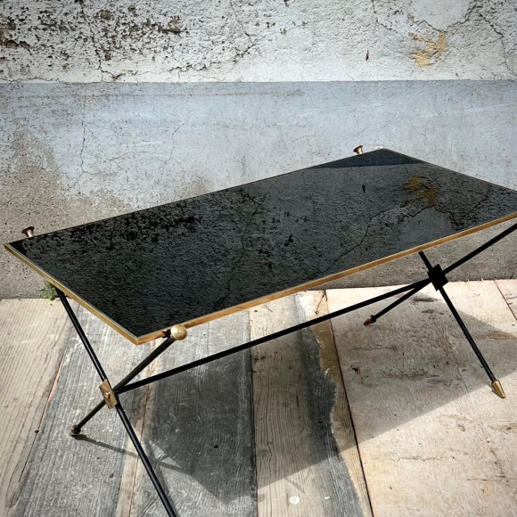 Table basse vintage années 70 verre et bronze