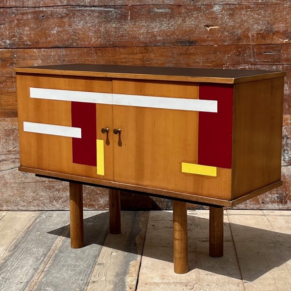 Buffet vintage bois clair et insertions de strati