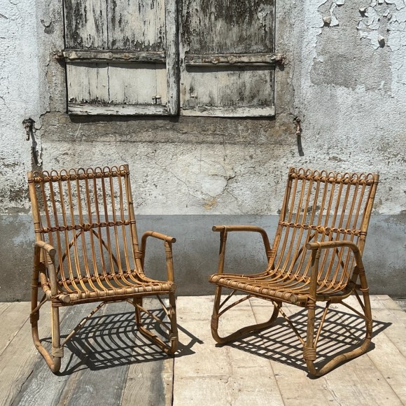 Paire de petits fauteuils vintage en rotin années
