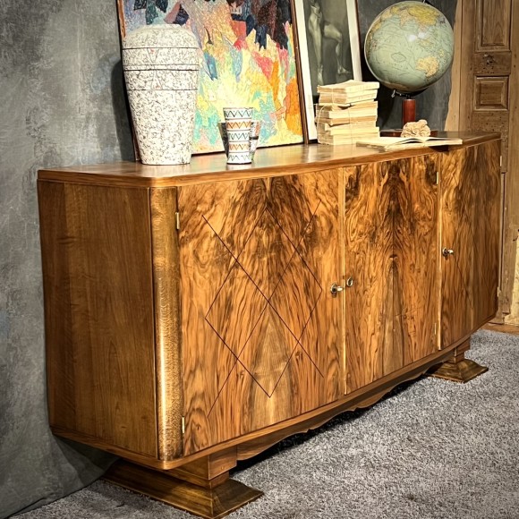 Buffet inspiration vintage en marqueterie de noyer