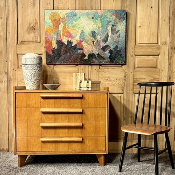 Commode Vintage 4 tiroirs chène naturel