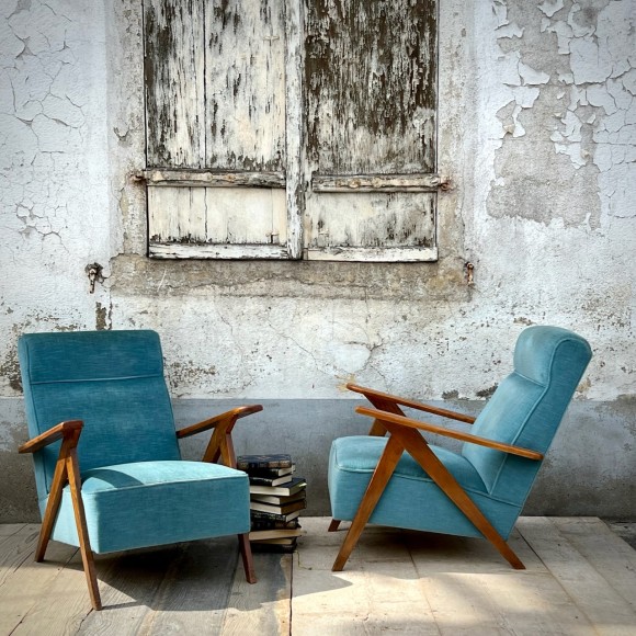Paire fauteuils vintage vers 1960 velours bleu