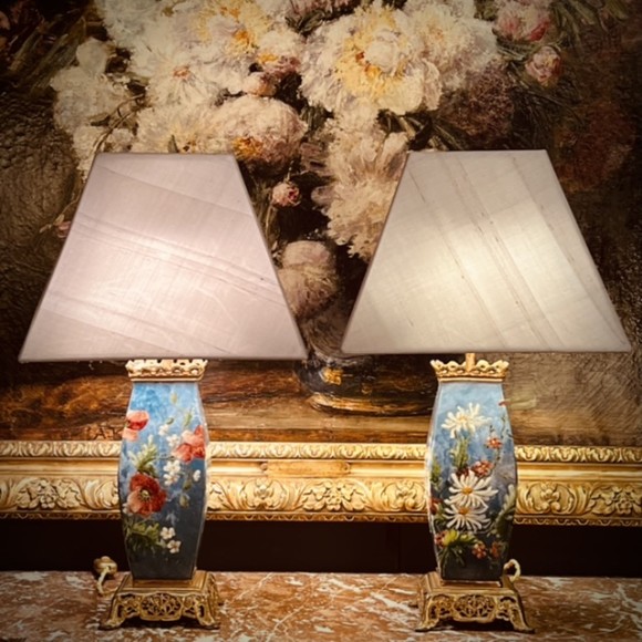 Paire de vases ceramique XIX ème montés en lampes
