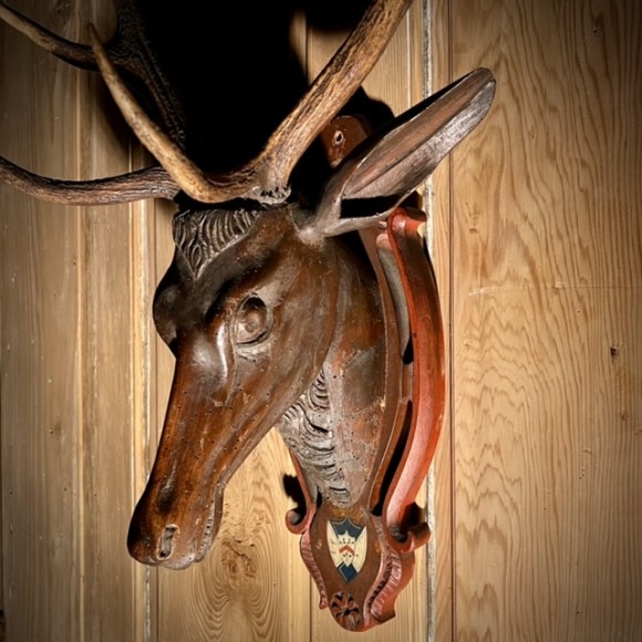 Trophée Cerf XVIII ème Bois Sculpté Alpes Suisse