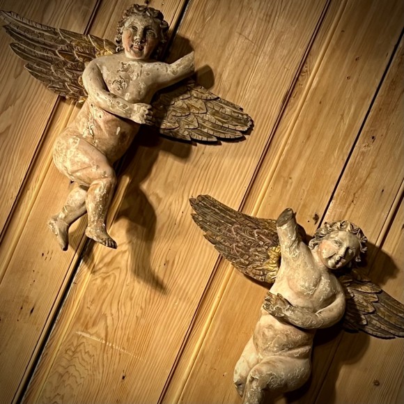 Paire de puttis bois sculpté XVIII ème
