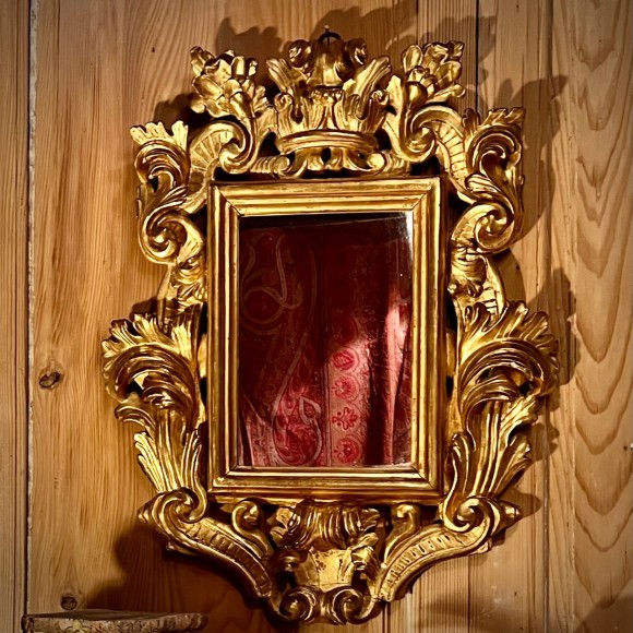 Miroir bois doré sculpté coquilles et rinceaux XVI