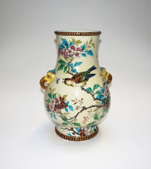 VASE DECOR FLEURS ET OISEAUX SIGNE DECK